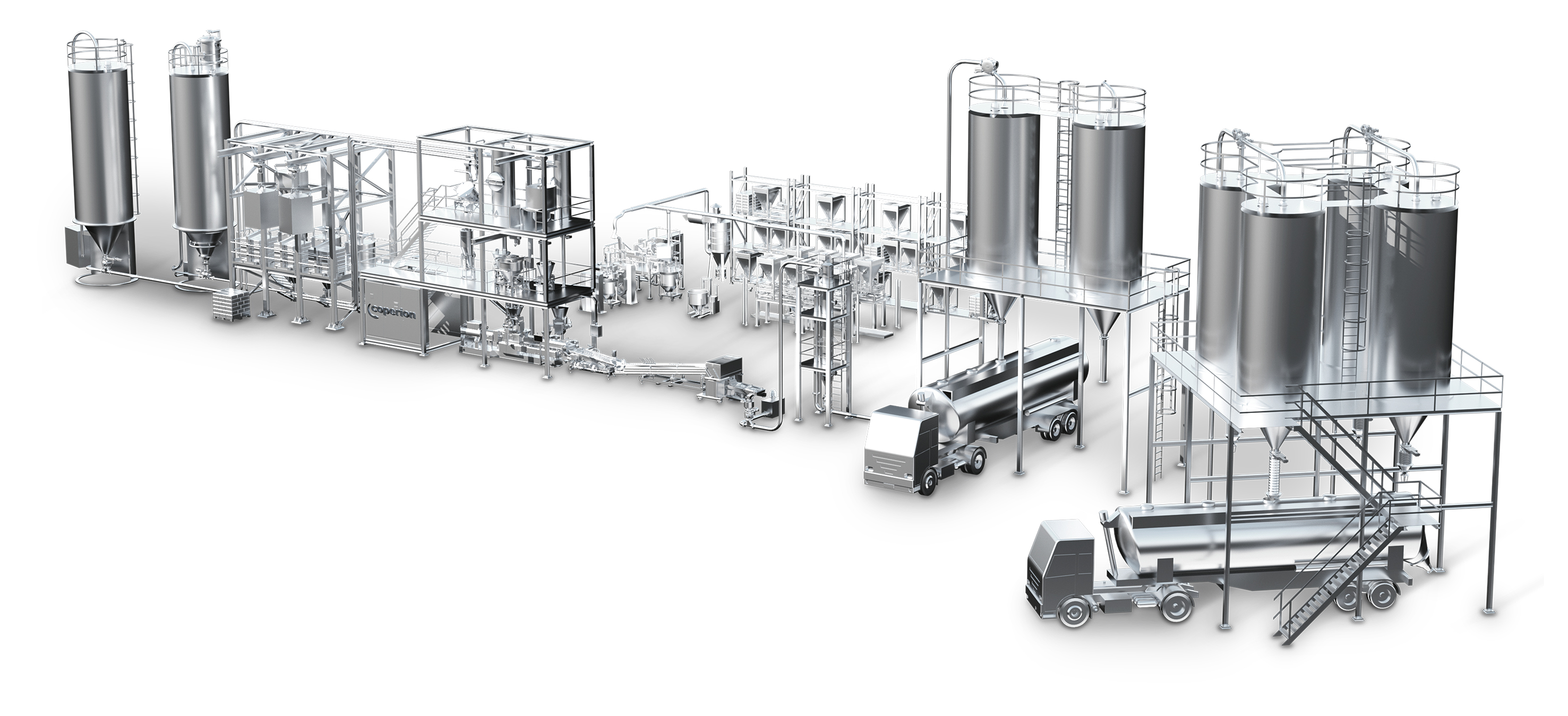 Neben Compoundier- und Recyclinganlagen realisiert Coperion Großanlagen für die Polyolefin-Herstellung. Diese bewähren sich seit vielen Jahren durch ihre Zuverlässigkeit im Betrieb. Neuentwicklungen konzentrieren sich auf die Senkung des Energieverbrauchs der Anlagen, die Erhöhung der Anlagenleistung, auf Einsparungen bei den Investitionskosten sowie auf innovative Prozesslösungen, wie z.B. schnelle Farbwechsel von Black auf Natural-Grade, ohne Notwendigkeit zur Reinigung der Anlage.