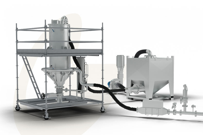 Our Single Silo solution uses two Bulk-X-Change heat exchangers so heating, degassing and cooling can take place in one unit. This continuous process setup is very energy efficient in applications where the product is already heated and only requires a low purge air flow.