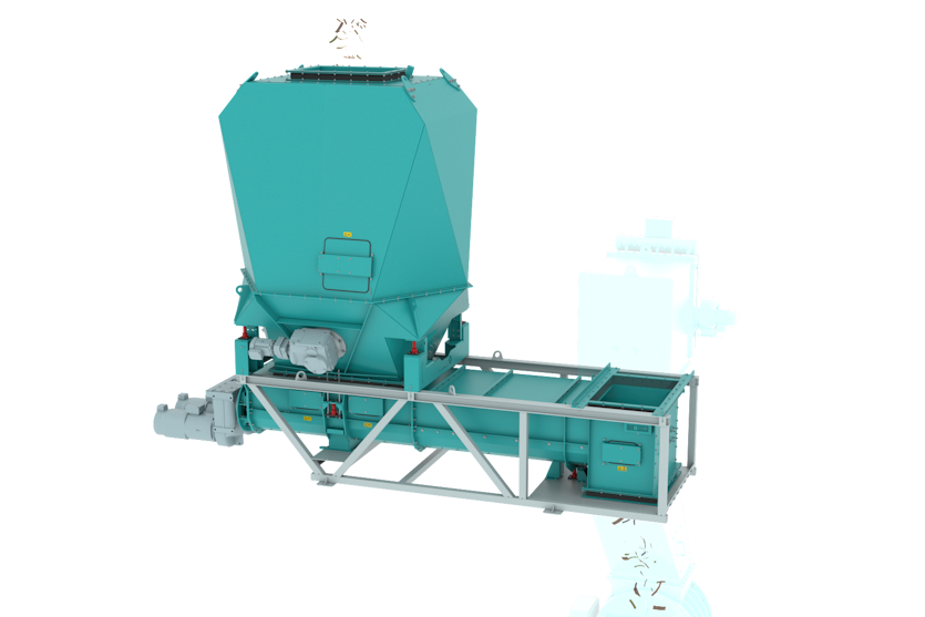 The LIW system is designed as speed-controlled screw feeder for continuous feeding of bulk solids at high rates. The activator in the bin ensures the even emptying and distribution of material to the two feed screws discharging the material into the process below.