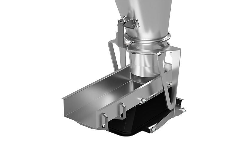 The key to achieving high accuracy is the ability to deliver a continuous, even product discharge with minimal pulsations. The K3 vibratory drive is able to do this thanks to a unique shock absorber design. Conventional vibratory feeders use rubber or spring shock absorbers, which allow movement of the drive in all directions, resulting in rotational motion. In contrast to these conventional shock absorbers, the K3 line uses a unique flexible pendulum technology which provides shock absorption only parallel to the desired direction of motion, eliminating rotational movement. This parallel motion ensures an even material flow of the product along the entire length of the tray.