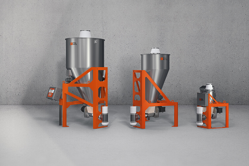Reliable feeding of free-flowing bulk materials in plastic processing applications. The ProRate PLUS Continuous Gravimetric Feeder Line has been designed with the specific requirements of the plastics processing industry in mind. The single screw feeders in three sizes are designed for free to moderate flowing bulk materials. The compact design and low space requirements of the ProRate PLUS feeders allow up to six feeders to be easily grouped around an extruder inlet. The feeders can also be placed individually.